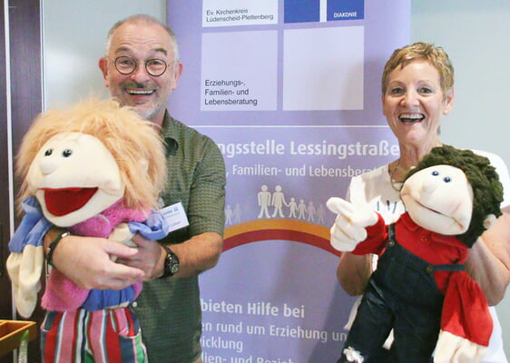 Herzliche Willkommensworte richtete überdies Irmtraut Hunecke, Vorsitzende der Evangelischen Allianz in Lüdenscheid und Mitglied vom Bündnis für Familien, an die jungen Eltern. „Frieden fängt bei gegenseitiger Wertschätzung an“, erklärte sie. Zum Nachtreffen lud sie in die „Gute Stube“ an der Werdohler Straße 11 ein. Niedliche Holzloks gab’s vom Bündnis für die kleinen Erdenbürger. Einmal mehr zeichnete federführend Susanne Sondermann von der Stabstelle Jugendhilfe- und Bildungsplanung für die bunte, fröhliche Veranstaltung, bei der sich mehr als 20 Vereine, Organisationen, Beratungsstellen und Initiativen rund um die Familie vorstellten, verantwortlich. Tatkräftig unterstützt wurde sie von Anja Weber von der Stabstelle Demografie.