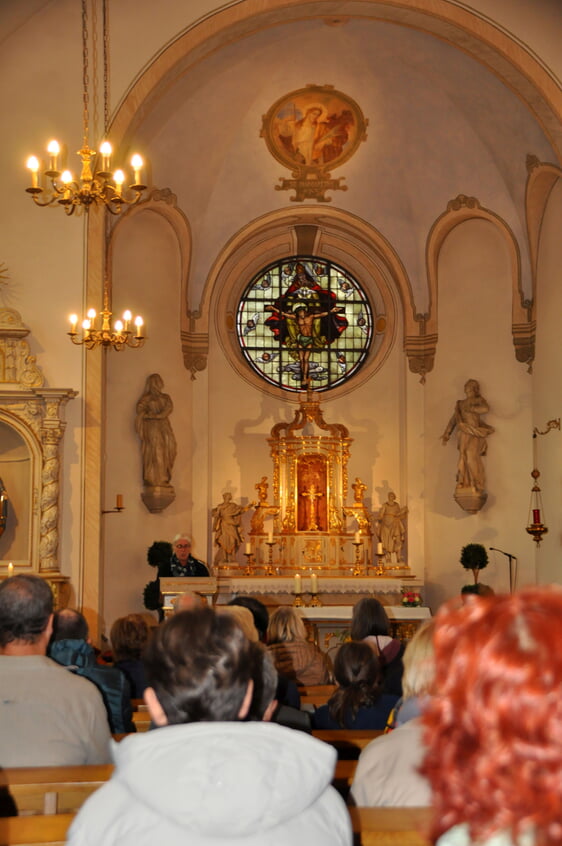 Auch Frau Huneck-Schlüter vom katholischen Pfarrverbund, die den Teilnehmerinnen und Teilnehmern die katholische Kirche in Ennest näherbrachte, wies besonders auf die Würde der Namensgeberin der Kirche, die heilige Margaretha, hin.