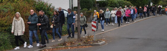 Sodann machte man sich auf einen rund 1,7 Kilometer langen Marsch zum Begegnungs- und Sozialzentrum „lebensfroh“ der Evangelischen Kirchengemeinde Attendorn-Lennestadt im Schwalbenohl. Auch auf diesem Weg setzten sich die Teilnehmerinnen und Teilnehmer mit der Bedeutung der Menschenwürde in den jeweiligen Religionsgemeinschaften und deren Einfluss auf die Gesellschaft auseinander, sei es durch Tom Kleine vom Arbeitskreis des Heimatvereins „Jüdisch in Attendorn“ oder auch durch Helmut Hesse vom Franziksuskreis der Hansestadt.