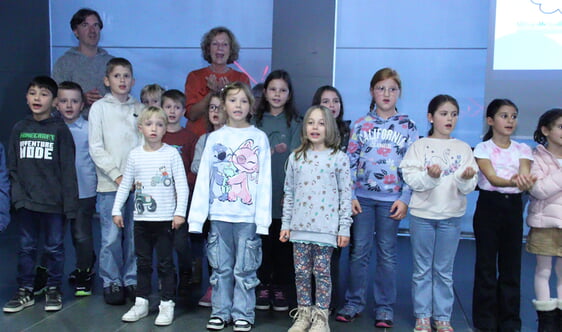 Wie Streit geschlichtet werden kann und wie er erst gar nicht entsteht, zeigten die Kinder in Film und Rollenspielen auf. Beide Seiten des Gaza-Konflikts betrachtete Bürgermeister Sebastian Wagemeyer in seinem Grußwort. „Es ist auf beiden Seiten unmenschliches Leid geschehen“, führte er aus. Auch nach innen wandte er den Blick. „Worte können zu Taten führen“, mahnte er. Es gelte, sich vor Augen zu führen, „wie wir miteinander sprechen“. Sorgenvoll ging sein Blick in die USA und dortige Entwicklungen. Er wolle sich nicht vorstellen, wie es sein würde, wenn solche Entwicklungen nach Europa hinüberschwappen. Auf ein Interview mit Kamela Harris, die von „Kapitulation der Gesellschaft“ sprach, ging er ein. Wichtig sei Zusammenhalt. Letztlich spiele nur eine Rolle, „dass wir Menschen sind.“ Mit einem Bob Dylan Lied unterstrich er seine Botschaft. Einblick gab die Grundschule Lösenbach bei der gut besuchten Veranstaltung in ihren Friedensstifter-Unterricht und die gewaltfreie Kommunikation, die die Kinder in der Schule erlernen.