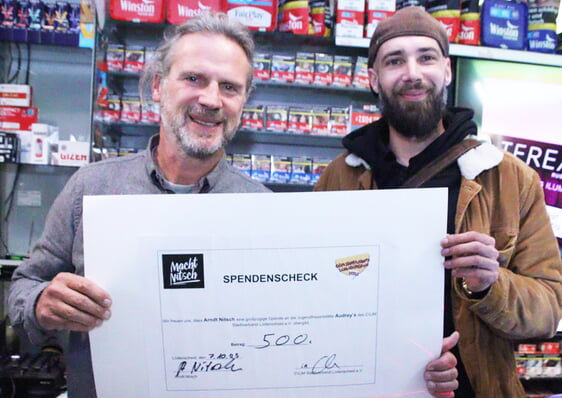 LÜDENSCHEID + „Ich bin früher auch im Jugendzentrum gewesen.“ Wie im Vorjahr überraschte der Lüdenscheider Arnd Nitsch, Betreiber des Kiosks Lotto Nitsch an der Altenaer Straße 1, Audrey’s-Einrichtungsleiter Ernest Okon am Dienstag im Nachgang des Stadtfests mit einer Spende in Höhe von 500 Euro, größtenteils durch Dosenpfand zusammengekommen. Dafür hatte Arnd Nitsch nach dem Stadtfest fünf große Säcke voll leerer Dosen gesammelt und den Dosenpfand eingelöst. 380 Euro waren dabei herausgekommen. Das restliche Spendengeld hatte der sozial engagierte Lüdenscheider aus eigener Tasche aufgestockt. „Ich mache das gerne“, erklärte er auf Nachfrage. Nach dem Brand im Vorjahr könne das Kinder- und Jugendzentrum das Geld gut gebrauchen. Auch für Sportvereine hat er immer wieder ein Herz. In der CVJM Jugendfreizeitstätte Rathmecke-Dickenberg war Arnd Nitsch in seiner Jugend häufiger Gast. Spielmaterial für Kinder soll von dem Geld angeschafft werden.