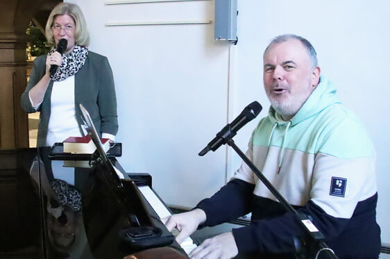 Musikalisch gestalteten Christian vom Hofe (Klavier und Gesang) und Anja Eilbrecht (Gesang) den Gottesdienst aus. Zufrieden zeigten sich die Pfarrer mit der Resonanz. Übereinstimmend lobten alle das gute Miteinander der Gemeinden, die Gemeinschaft untereinander bei den verschiedenen Veranstaltungen und den seit Jahren gemeinsam gefeierten Abschlussgottesdienst. „Die Leute erleben es als wertvoll, sich über Gemeindegrenzen hinweg zu begegnen“, meinte beispielsweise Sebastian Göpfert, der auch für den Kanzeltausch zum Auftakt der Allianzgebetswoche lobende Worte fand. Ähnlich sahen das die beiden Pfarrer.