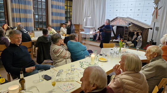 Das reichhaltige Büffet (Hausmeister Uwe Boeses Kommentar: „Es war kein Kontrollverlust, sondern willentliche Planung, dass ich vor dem Büffetgang meinen Gürtel öffnete“) war wieder vom Presbyterium hergerichtet worden. Es war somit ebenso ein fester Programmpunkt wie das Quiz und auch die Bildershow, in der Pfarrerin Laddach das Gemeindejahr mit ihren besonderen Höhepunkten revuepassieren ließ. „Diese Gnadenhochzeit war mein persönlicher Höhepunkt.“, meinte sie und zeigte das Bild des Jubelpaares in der Ohler Kirche bei der Wiederholung des Treueversprechens. Die neue Osterkerze, der Gottesdienst im Garten bei Freunden in Landemert, besondere Gottesdienste in der Ohler Kirche, das Gemeindefest, der Kinderbibeltag, der Lichtergottesdienst, die Weihnacht in der Kirche und immer wieder Bilder von Menschen der Gemeinde.
