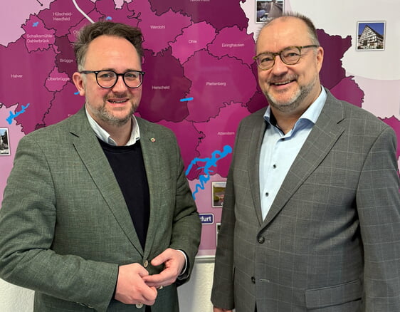 LÜDENSCHEID + Zu einem intensiven Austausch haben sich Superintendent Dr. Christof Grote vom Evangelischen Kirchenkreis Lüdenscheid-Plettenberg und der Landtagsabgeordnete Matthias Eggers im Haus der Evangelischen Kirche in Lüdenscheid getroffen. Das Gespräch war bei der Freigabe der A-45-Talbrücke verabredet worden und diente dazu, aktuelle Herausforderungen sowie gemeinsame gesellschaftliche Anliegen zu beleuchten.